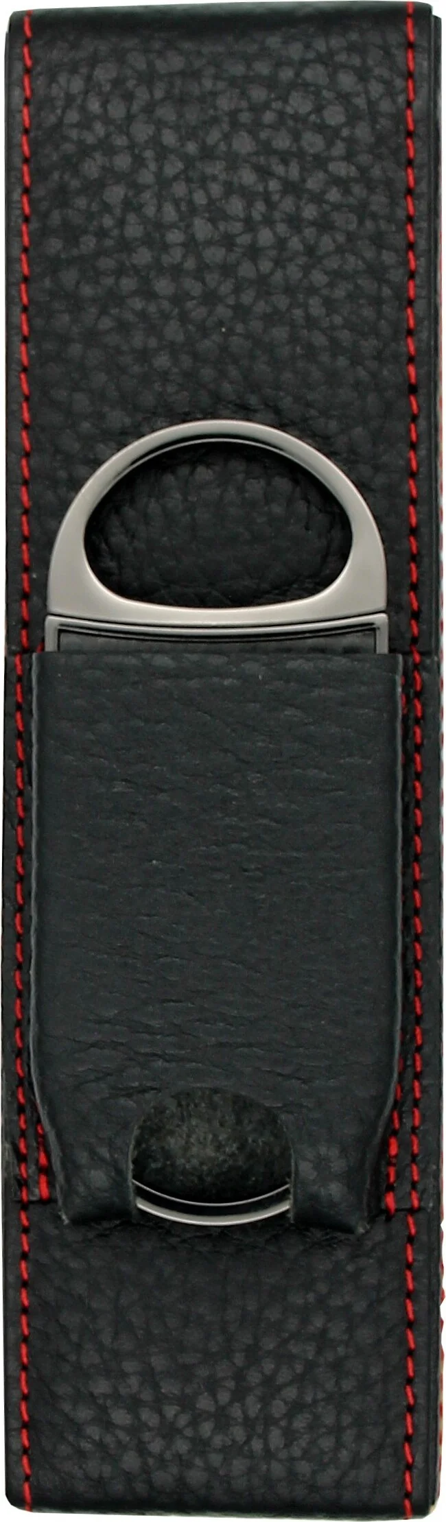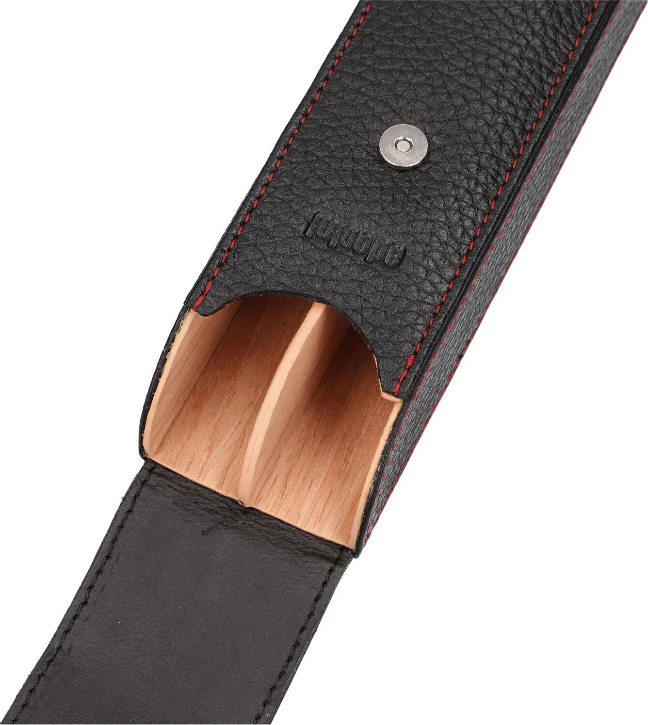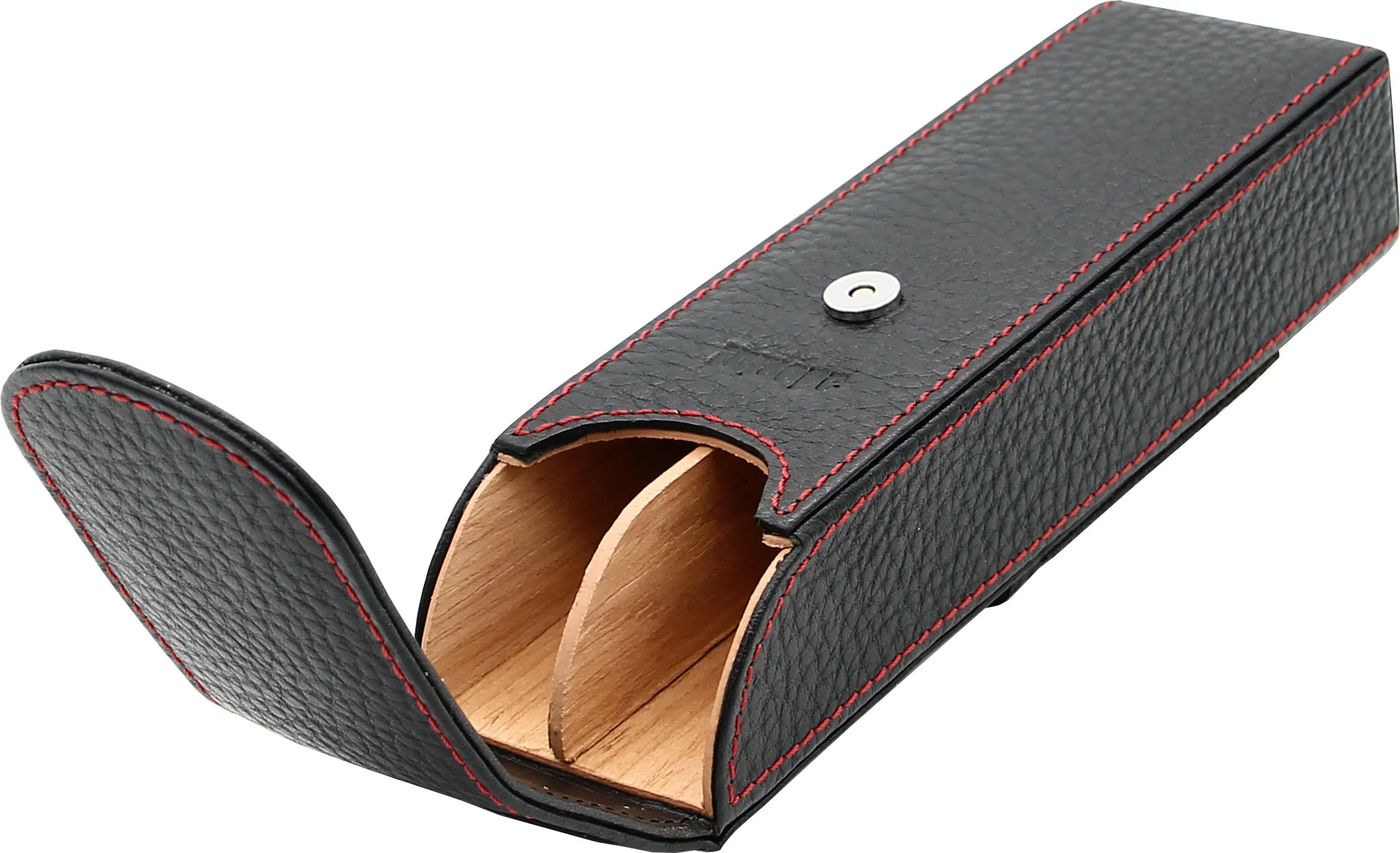 adorini Pocket Cigar Case Black with Red Decorative Stitching with Accessory Pocket