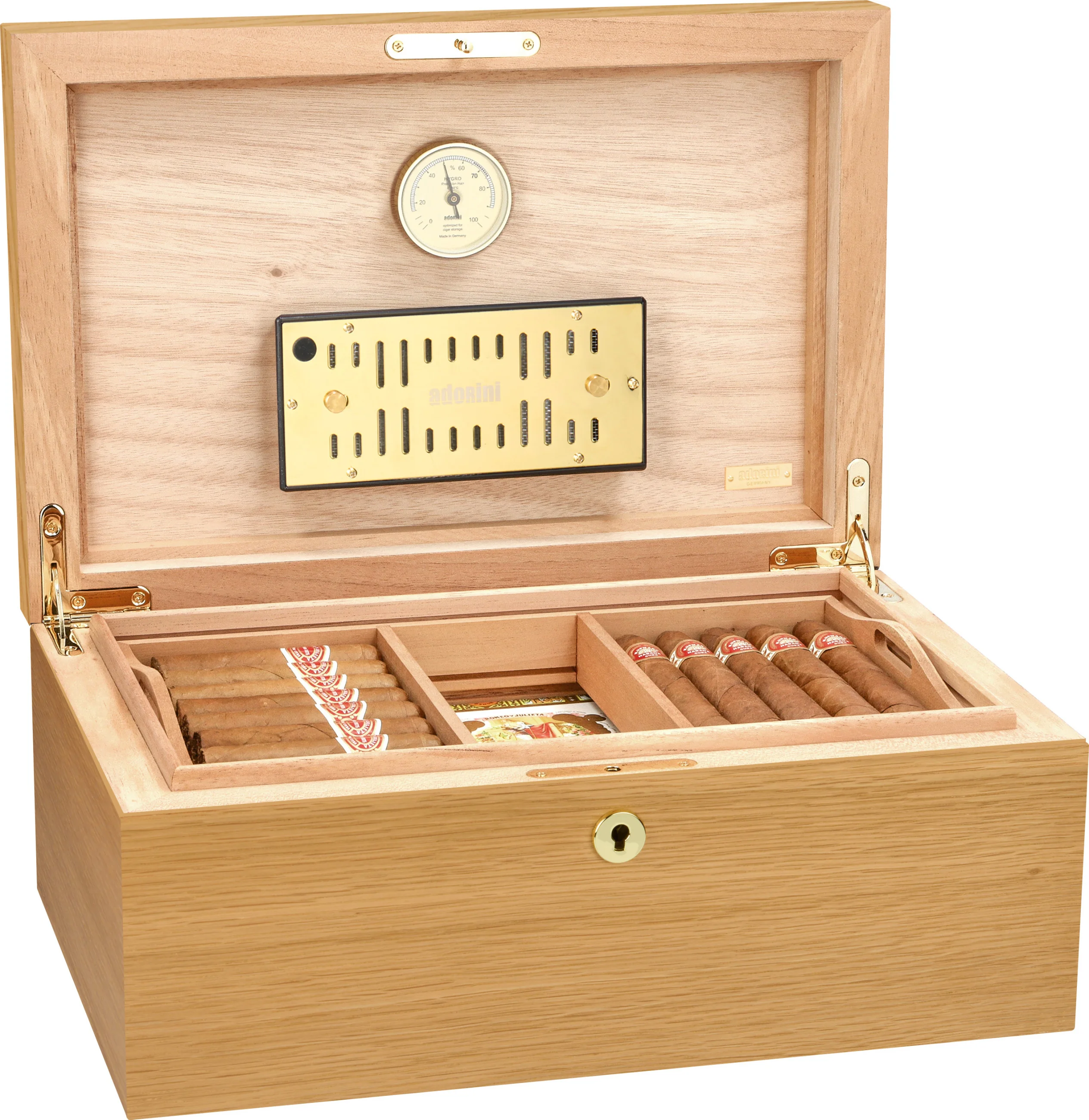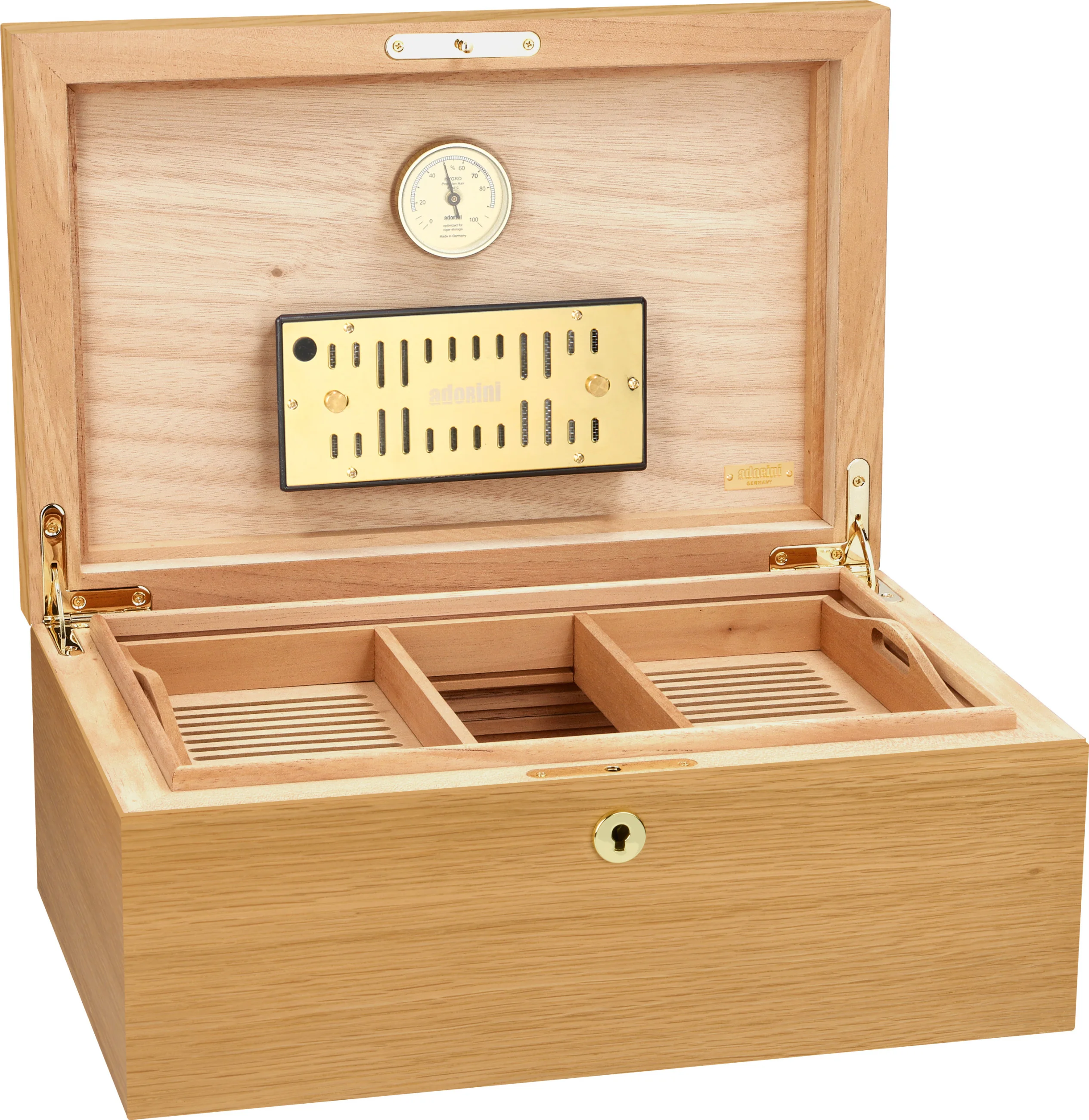 Model od hrasta zadivljuje svijetlom bež bojom sa suptilnim šarama, što stvara posebno elegantan učinak i savršeno se uklapa u svako okruženje. Humidori Grande mogu primiti do 150 cigara, nudeći dovoljno prostora za kolekciju zahtjevnih poznavatelja.