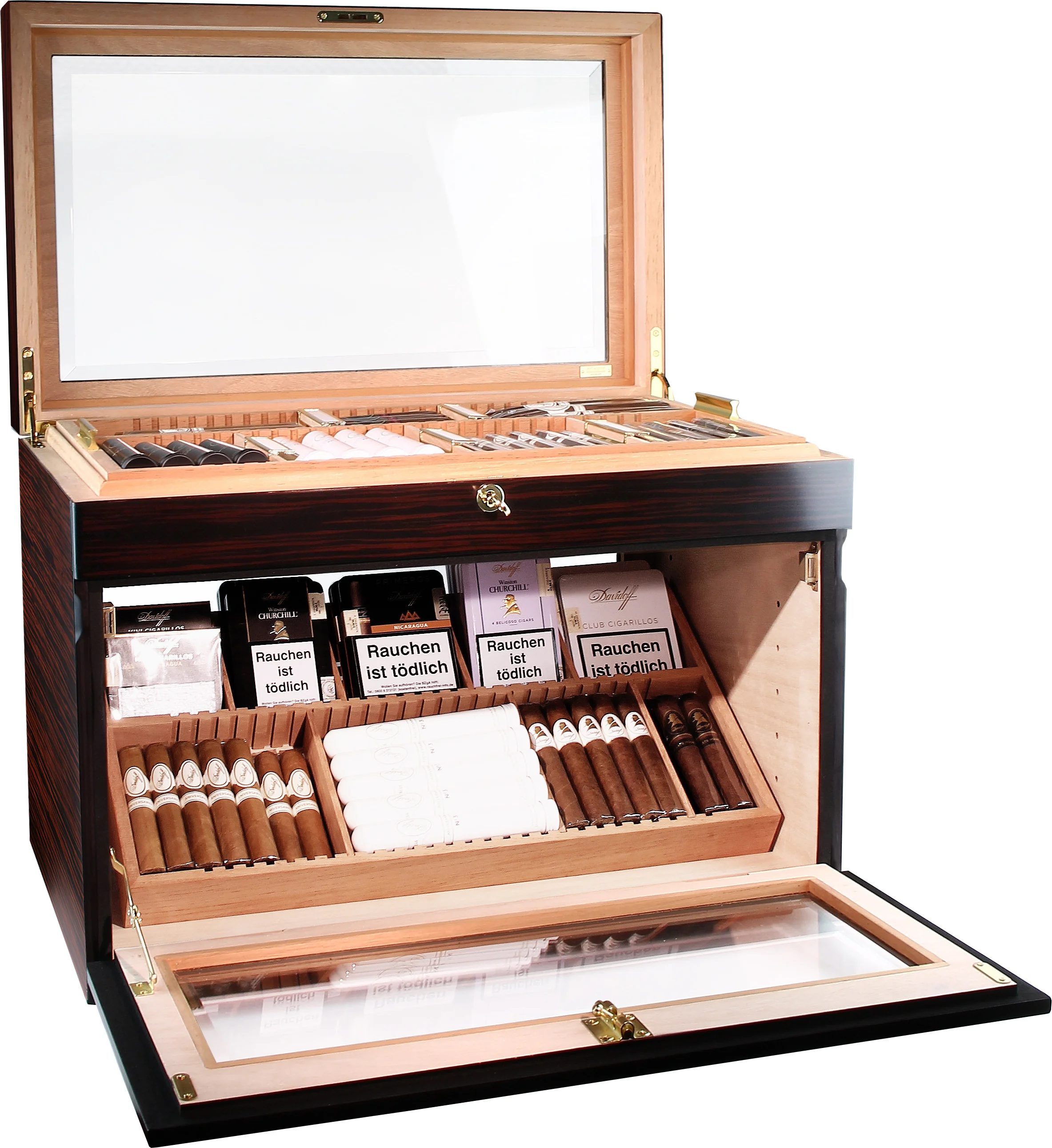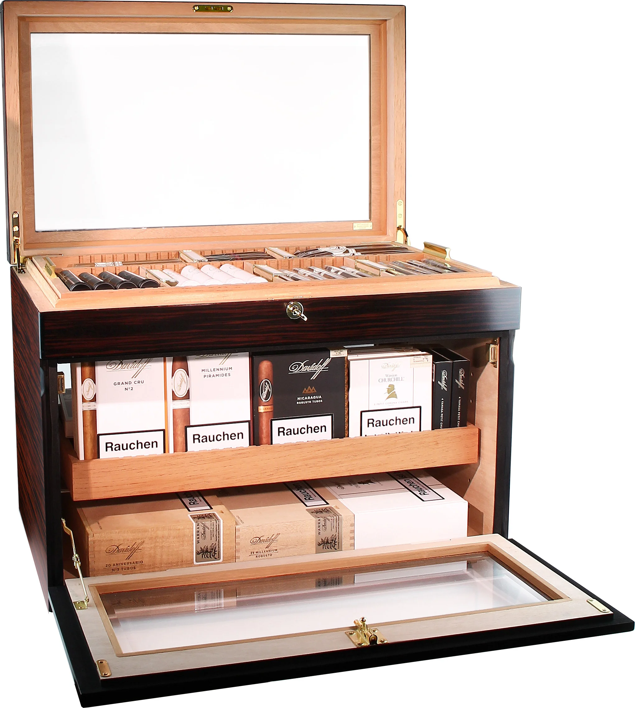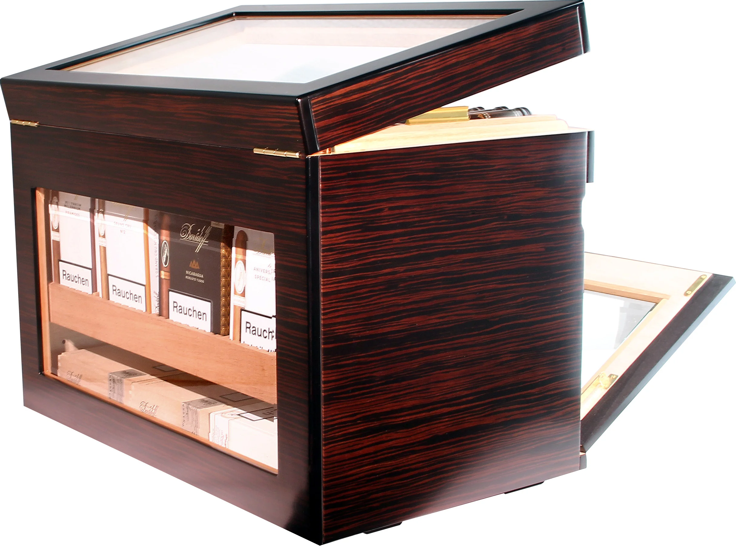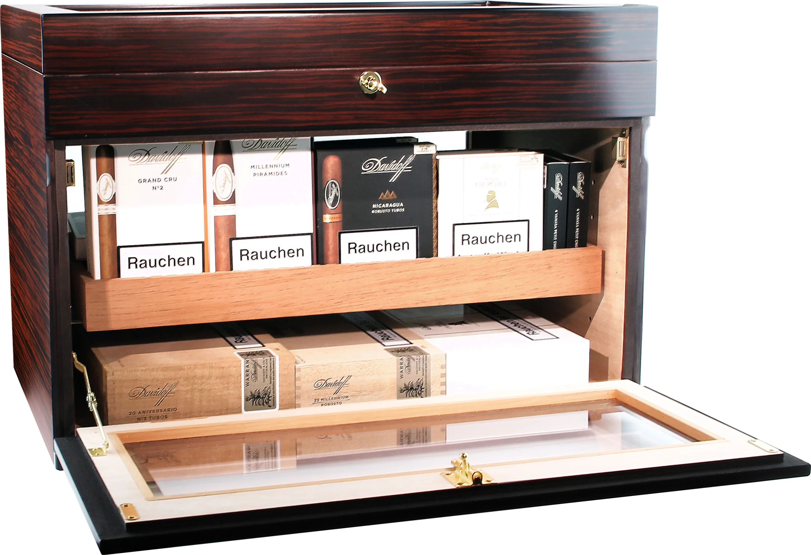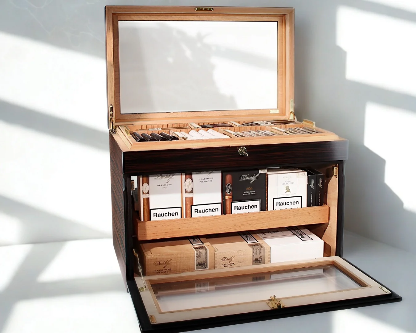 Pojedinačne cigare, kutije ili čak cijeli sanduci za cigare mogu se pohraniti na više razina. Unutrašnjost se može podijeliti u različite pretince:
