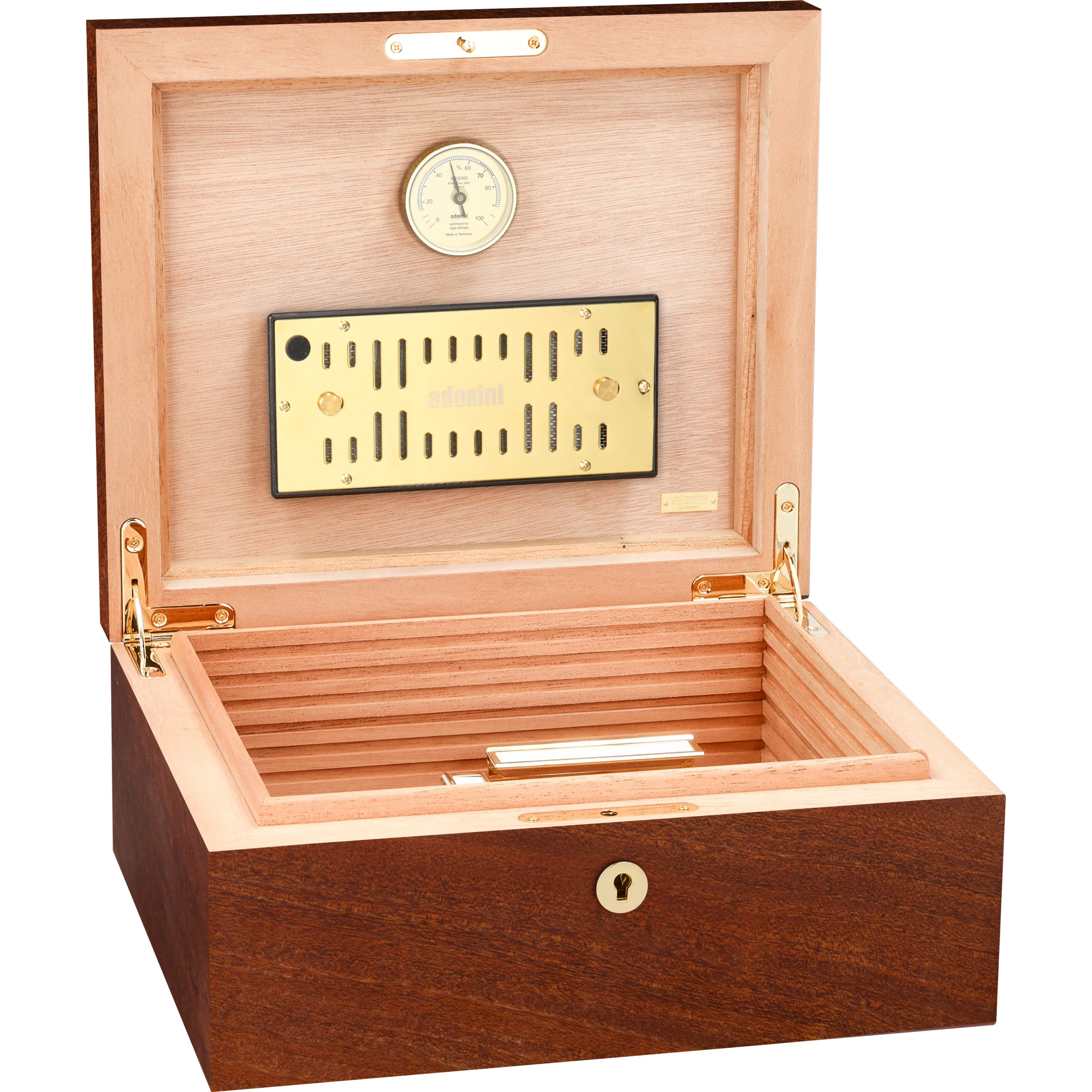 adorini is one of the world's leading humidor brands. Its products are characterized by high-quality materials, sophisticated design, and innovative functionality. Precise hygrometers and humidification systems from adorini can also be found in the world's most exclusive humidors. Cigar aficionados, restaurateurs, and collectors appreciate adorini for its durable quality, stylish craftsmanship, and reliable precision.