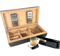 Čvrsta konstrukcija svakog humidora radi u savršenom skladu s ovlaživačem, tako da nikad nećete morati upotrijebiti higrometar! Trebate samo držati ovlaživač napunjen destiliranom vodom i povremeno otopinom za kontrolu vlažnosti, i to je to. To vam omogućuje da provedete manje vremena brinući se o stanju svojih cigara, a više vremena uživajući u boljim cigarama u učinkovitijim uvjetima.