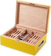 Dvije različite razine prostora za pohranu daju vam fleksibilnost da učinkovitije organizirate svoje cigare. Gornja razina sadrži dvije pomične ladice koje imaju ventilaciju za bolju cirkulaciju zraka. Donja razina ima puno prostora za cigare i uključen uređaj za ovlaživanje CigarSpa.