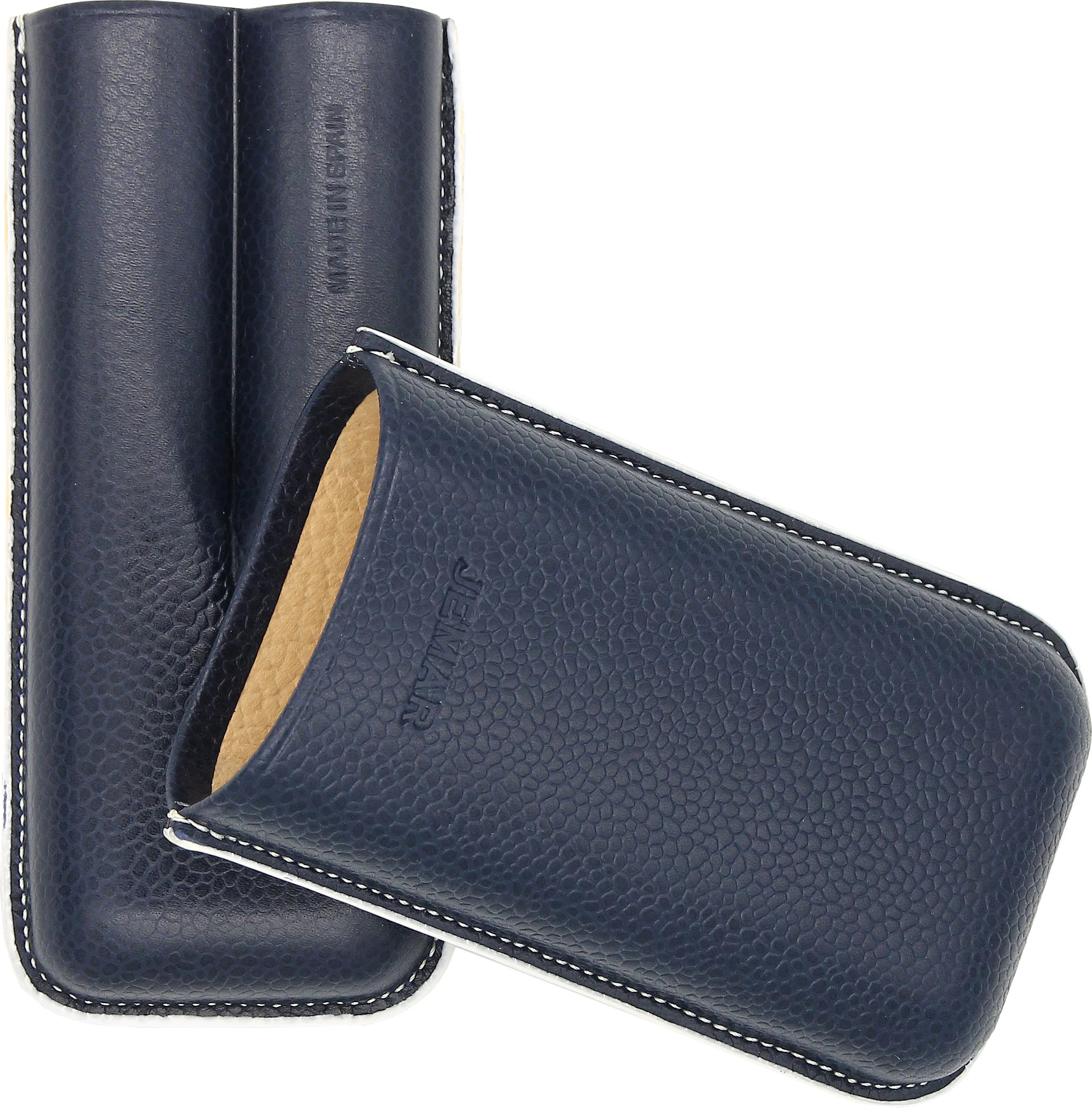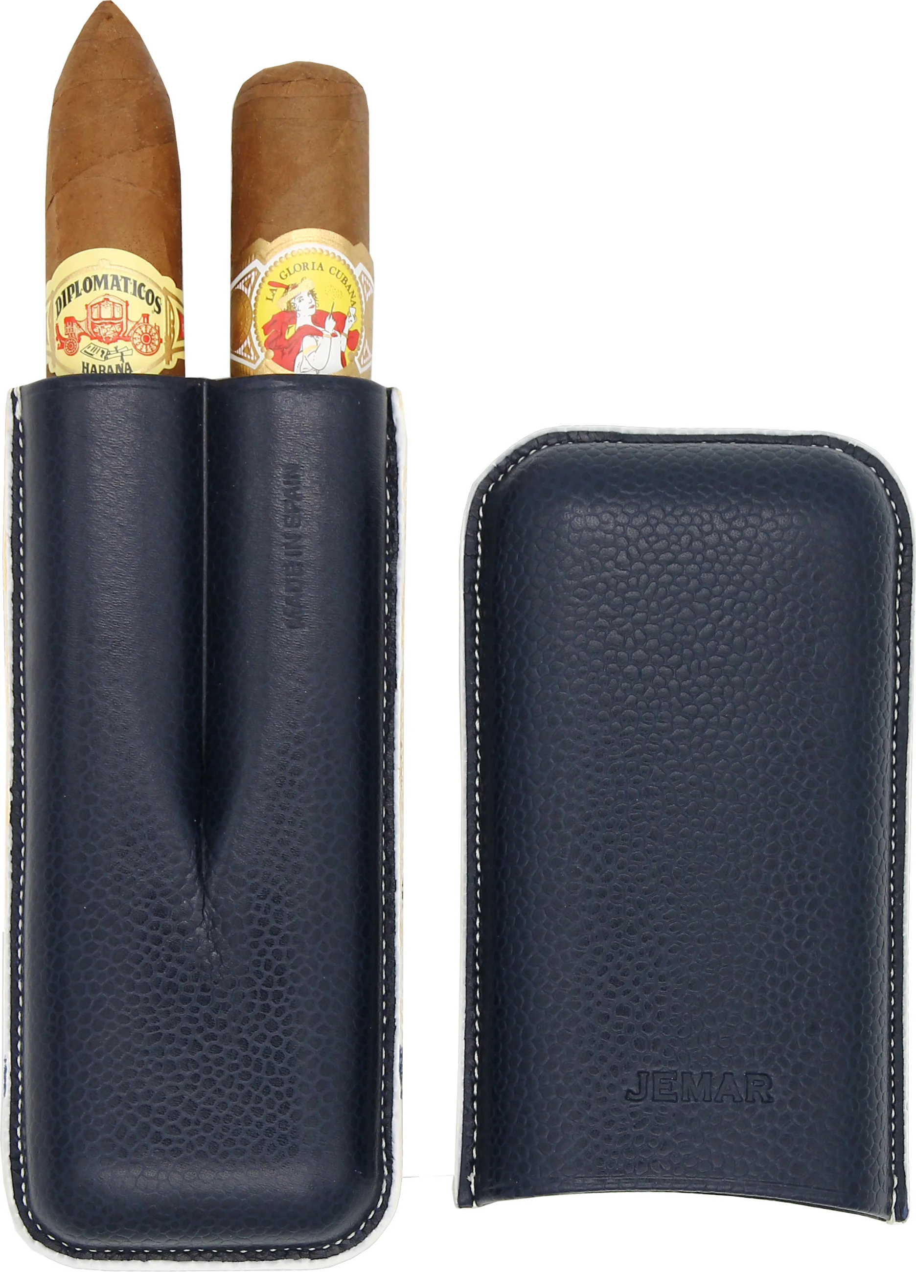 Kožnata futrola Jemar za dvije cigare u plavoj boji Beruga s rubom