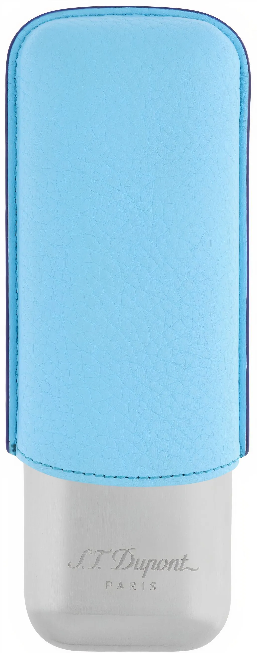 Futrola S.T. Dupont za 2 cigare u tirkiznoj boji s kromiranim dijelom elegantna je futrola modernog izgleda francuske luksuzne marke S. T. Dupont. Gornji dio izrađen je od visokokvalitetne svjetloplave goveđe kože koja je obrađena u Španjolskoj i ima utisnuto "Made in Spain" s unutarnje strane. Koža ima ukrasni šav s vanjske strane koji naglašava elegantan cjelokupni izgled futrole. Donji dio futrole izrađen je od sjajnog kroma, koji je idealan za transport dviju cigara jer je otporan na pritisak i lomljenje. Posebnost je urez u gornjem dijelu metalne baze, koji sprječava da se cigare ili pojedinačna cigara koja ostane u kutiji kotrljaju naprijed-natrag. Promjer futrole od nehrđajućeg čelika je 2,45 cm i stoga drži dvije cigare s maksimalnim promjerom prstena 61. Duljina futrole varira od otprilike 160 mm do otprilike 220 mm kad je potpuno uvučena. Artikl se isporučuje u reprezentativnom pakiranju, zbog čega je idealan kao poklon. Razveselite samouvjerenog i modernog sportskog ljubitelja cigara ovim vjernim pratiteljem. Jamstveni list i upute za njegu tvrtke Dupont uključeni su uz futrolu.