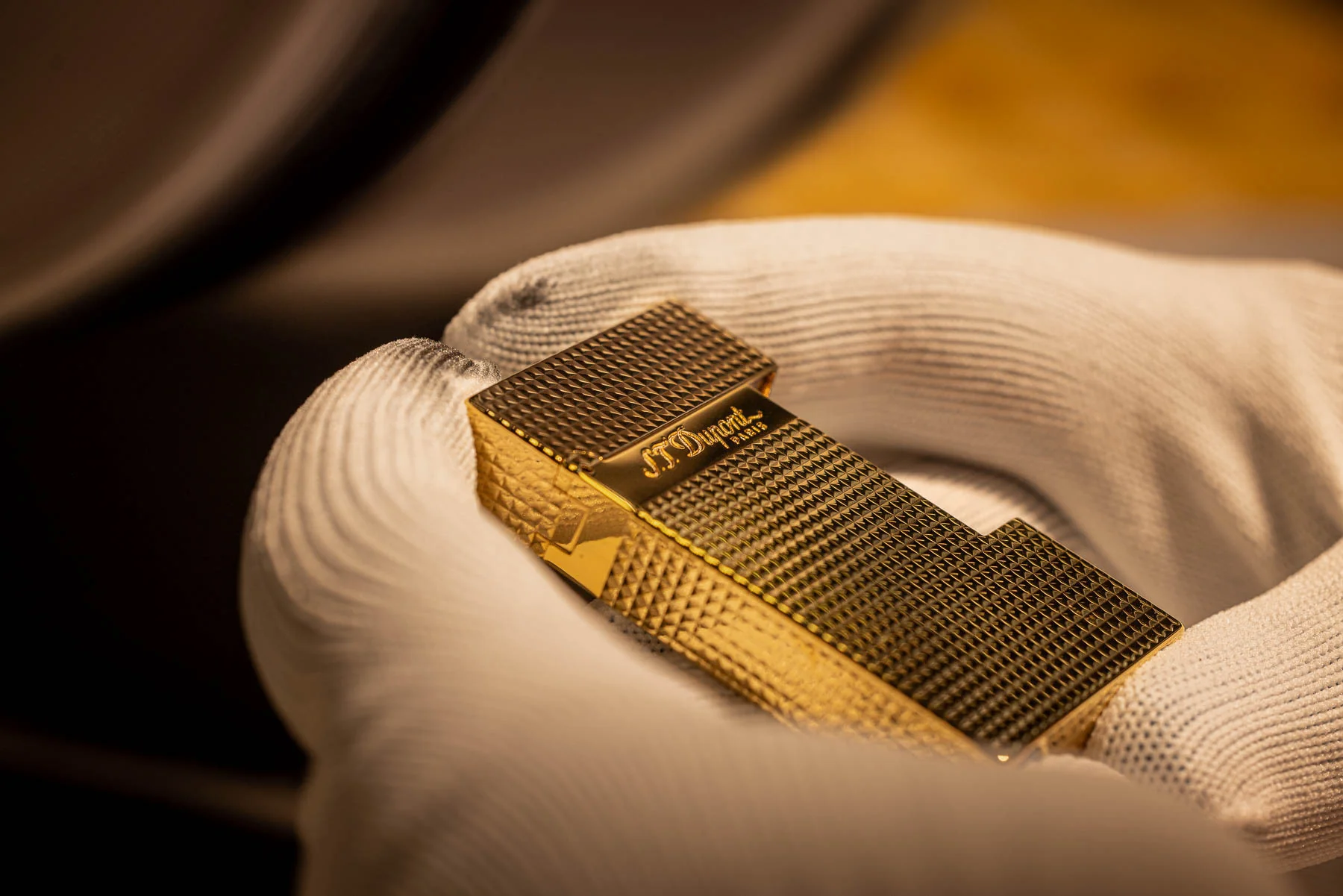 S. T. Dupont Ligne 2 16284 upaljač s uzorkom dijamantnih glava žutozlatni