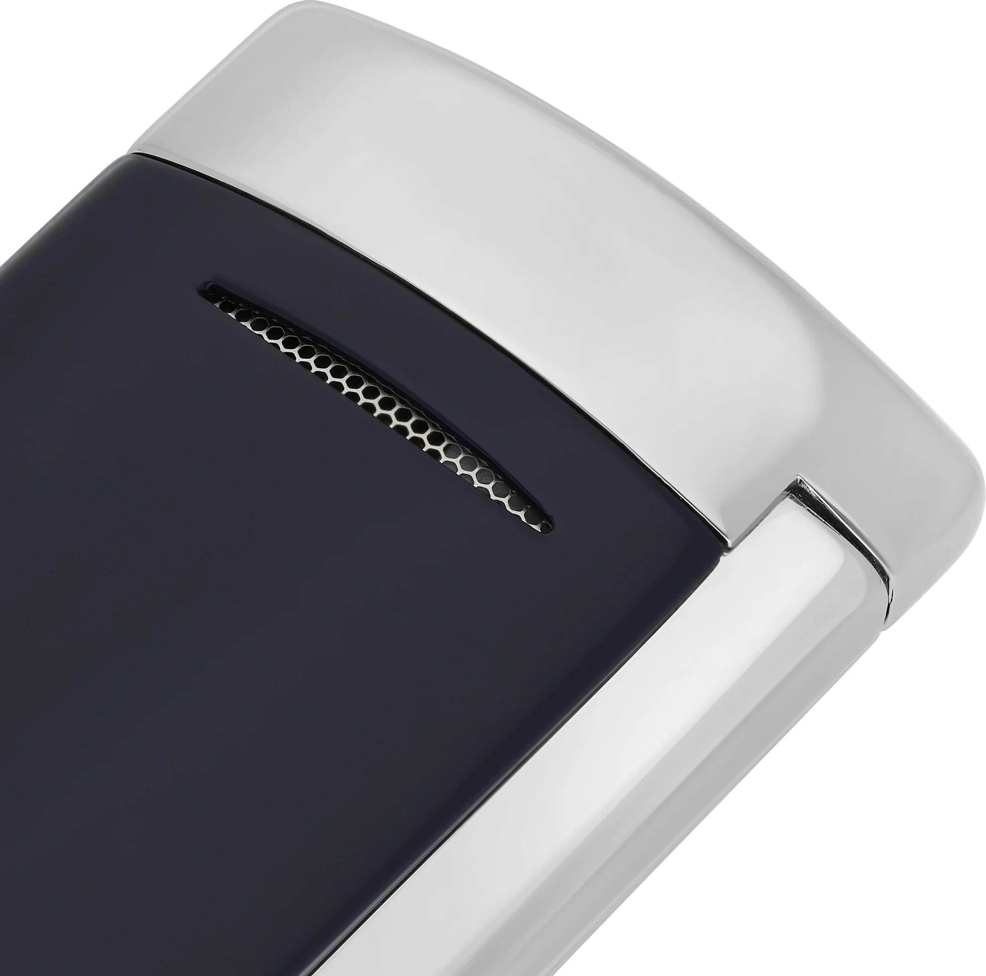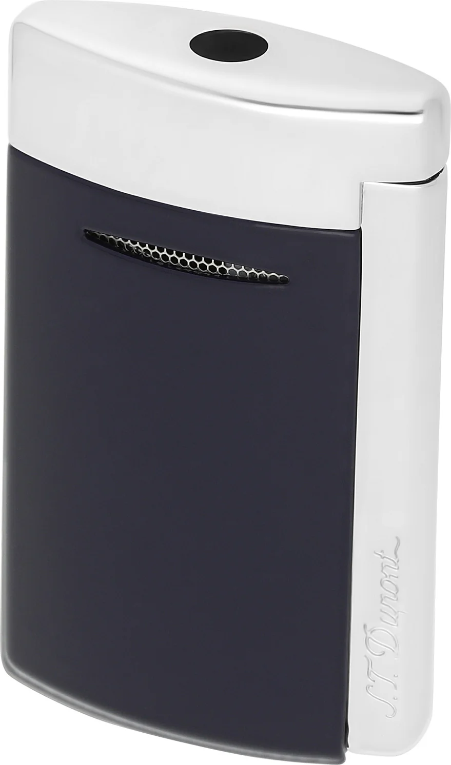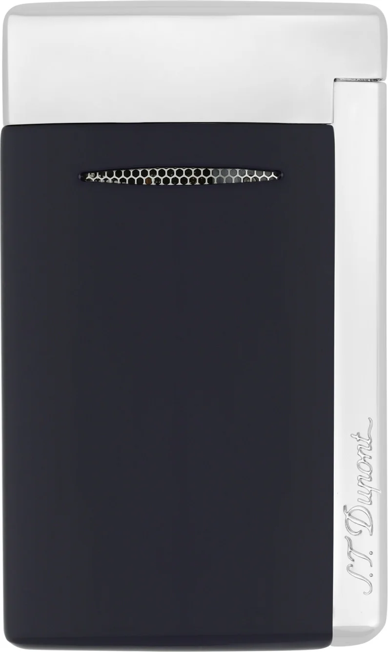 Upaljač S. T. Dupont Minijet u tamnoplavoj boji s kromiranim detaljima profinjen je i praktičan upaljač koji zadivljuje svojim snažnim mlaznim plamenom i električnim piezo paljenjem. Mat plava završna obrada s poliranim kromiranim detaljima čini ga elegantnim dodatkom za svakodnevnu upotrebu.