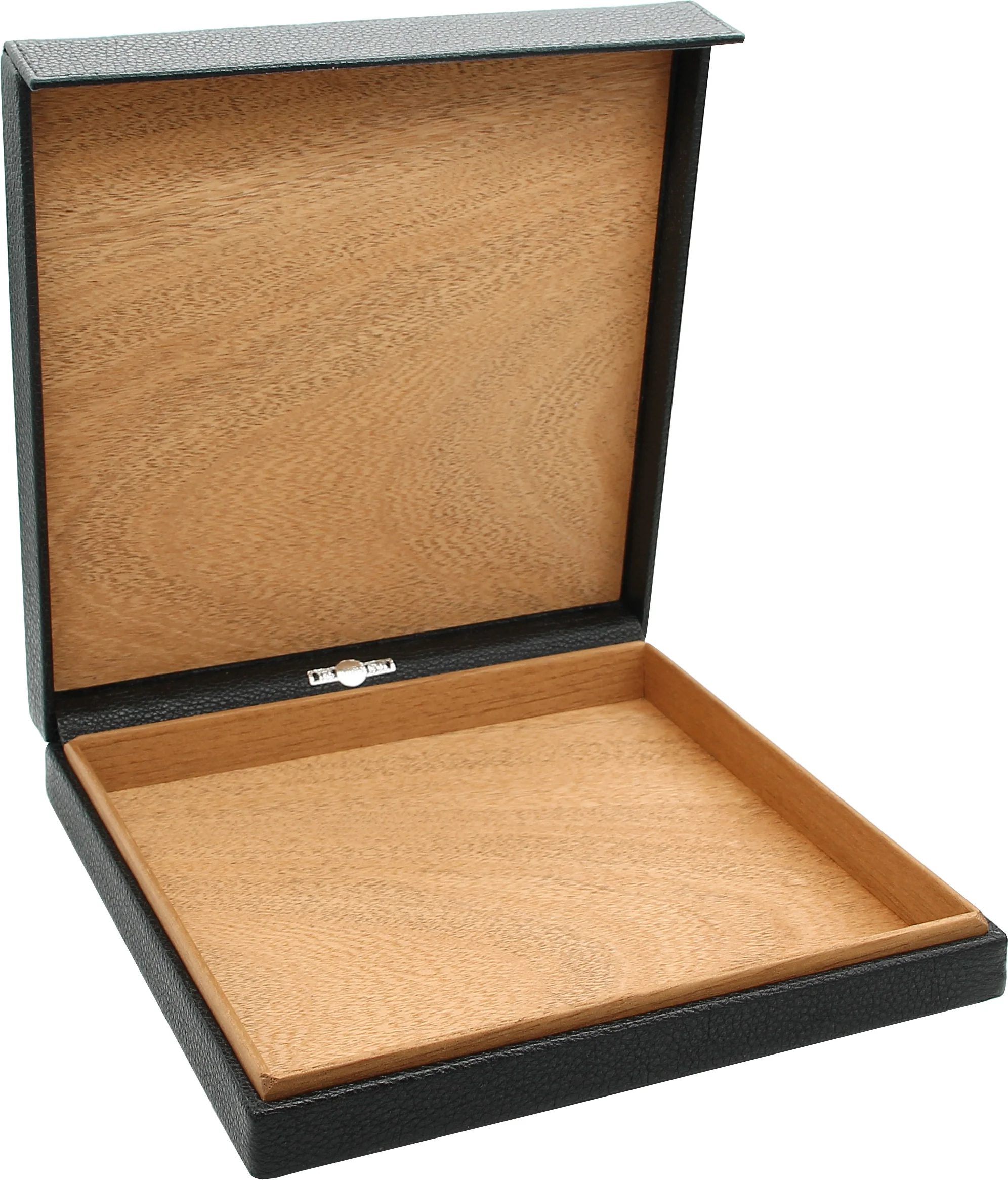 This elegant travel humidor in black from the renowned English heritage brand Dunhill is the perfect companion for travelling. Covered in the finest grained leather from Spain and lined with high-quality wood, it offers space and protection for approximately 10 cigars. The closure is a magnetic clasp hidden beneath the leather. The White Spot symbol embossed into the leather is an unmistakable Dunhill trademark. A sophisticated travel humidor that stylishly protects your cigars and proves to be a reliable companion on all your travels and trips.